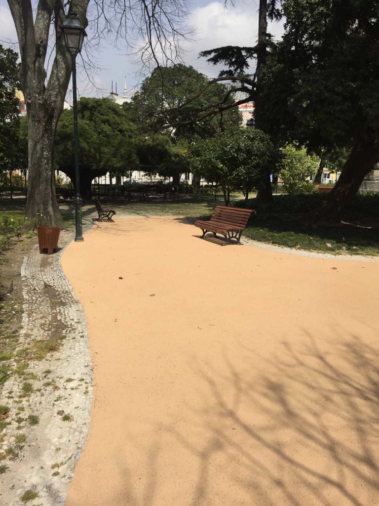 Fornecimento dos materiais aplicados no Piso do Jardim do Príncipe Real, constituído por argamassas coloridas aplicadas sobre um Betuminoso. Será o fim dos dias poeirentos que existiam naquela zona da cidade de Lisboa.