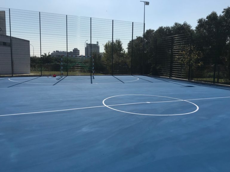Fornecimento e Aplicação de pavimento SPORTPLUS DA MAXASPHALT composto por várias camadas de resinas sintéticas coloridas antiderrapante, incluindo as marcações de jogo.
